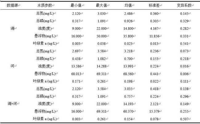 表1 湖泊、河流水质参数的统计参数