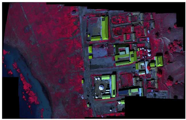 图8 湖岸边机载高光谱数据三波段伪彩色图