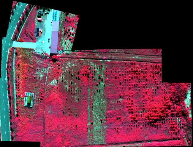 图7 小湖及林木、道路无人机高光谱拼接效果图