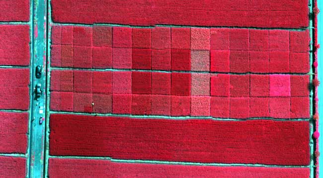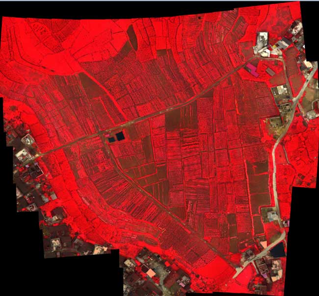 农业试验田机载高光谱数据拍摄于2019年4月份,飞行高度为100m,天气为晴,其百度链接为:链接:http://pan.baidu.com/s/1nJgKrFn2XJ-ZC_SNAr_PDA 提取码:x6w1,其三波段伪彩色图如下图所示。
