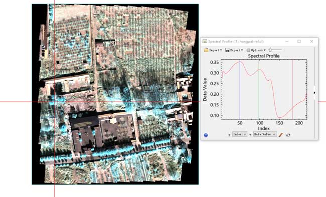 机载高光谱林业数据采集于2018年7月23日,天气为晴,飞行高度为200m,其百度链接为:链接:http://pan.baidu.com/s/1773-YEL-eC7-bIG7ap9VfA 提取码:zgjq,其效果展示图如下: