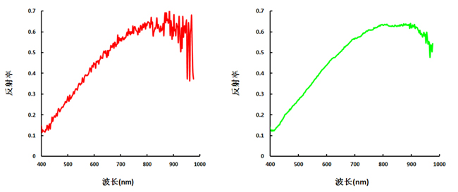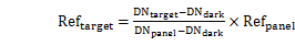 其中,Reftarget为目标物的反射率,Refpanel为标准参考板的反射率,DNtarget为原始影像中目标物的的数值,DNpanel为原始影像中标准参考板的数值,DNdark为成像光谱仪系统误差。