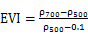 PCA变换的RGB彩色合成,让我们更客观地看到不同年份小麦种子在图像显示上的差别,为了进一步分析不同年份小麦种子的差别,分别提取不同年份的小麦种子,在提取不同年份小麦种子的基础上分别提取其均值、标准差等特征,不同年份的小麦种子的均值、标准差变化如图6所示。从图6可知,无论是小麦种子的均值或标准差,其不同年份的小麦种子光谱曲线非常一致。从均值来看,在500 nm处不同年份的小麦种子区分相对明显;从标准差来看,700 nm处不同年份的小麦种子区分相对明显。因此本研究利用这两波段分别构建NDVI和EVI光谱指数,NDVI和EVI的计算公式如下所示: