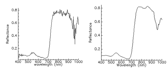 图3光谱降噪前后的反射率(左为降噪前,右为降噪后)