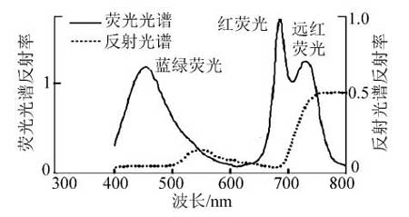 植物受激发后发出的荧光主要有:蓝绿荧光( Blue-green fluorescence,BGF ) 、红 荧 光 ( Red-fluorescence,RF) 和远红荧光( Far-red fluorescence,FRF) ,如图3所示。