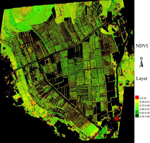 图5.3 石板桥镇烟草基地烟草、作物、杂草的NDVI分布图