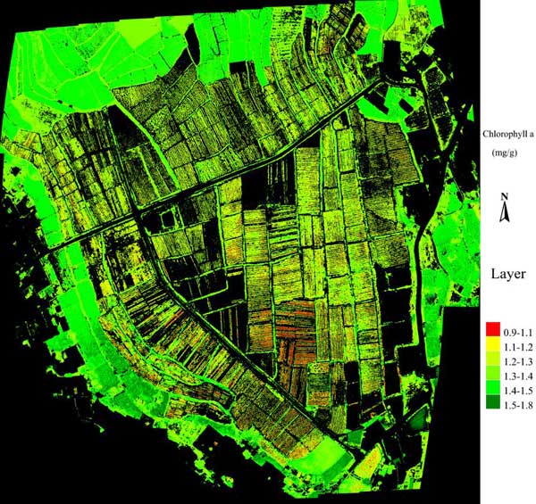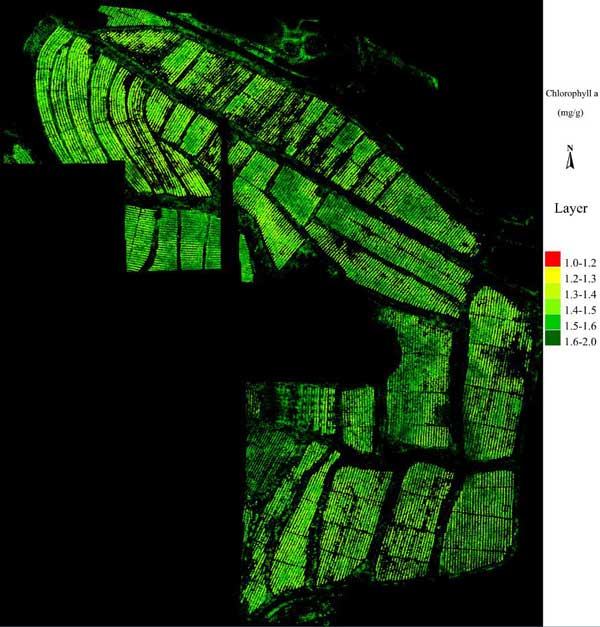图6.1 大理烟草基地烟草叶绿素a和叶绿素b的反演图