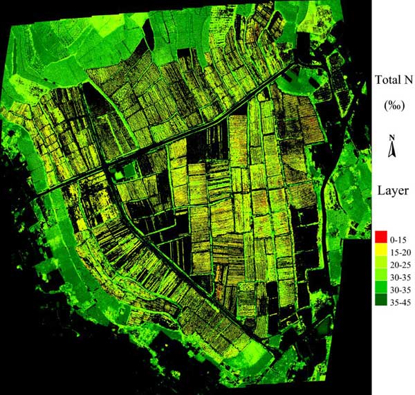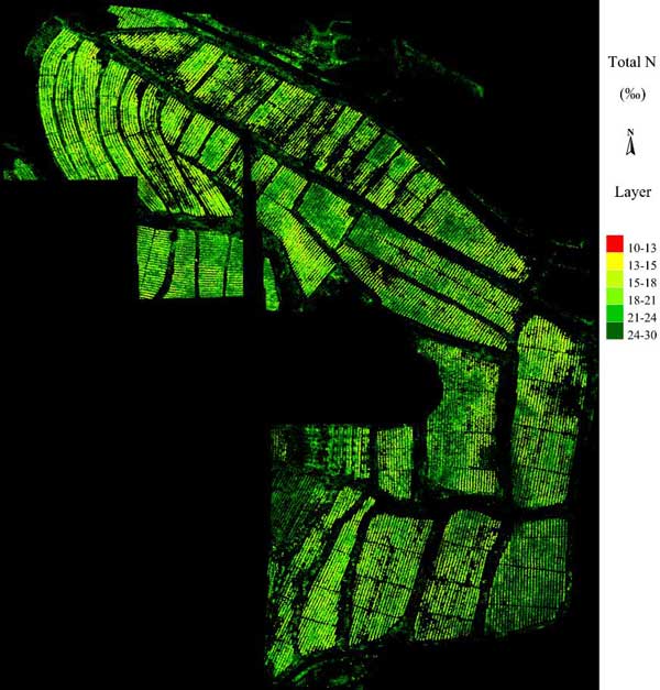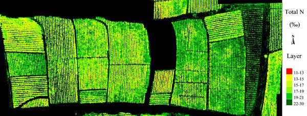 图7.3 石板桥镇烟草基地烟草、作物、杂草总氮反演图