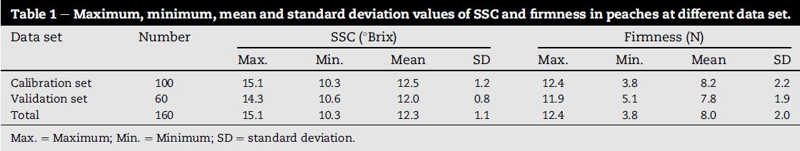 表1 肥城桃可溶性固溶物含量和硬度含量分布及数据集划分
