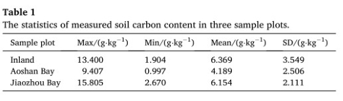采用Perkin - Elmer 2400元素分析仪测定土壤碳含量。三个样地测得的土壤碳含量统计结果如表1所示。