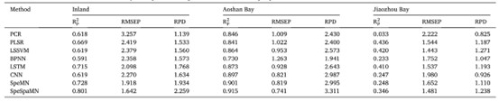 在内陆地区多种建模方法的土壤碳含量预测结果中,LSTM在PCR、PLSR、LSSVM、BPNN、LSTM和CNN中预测效果*好。对比6种方法,SpeMN方法优于LSTM方法。使用SpeSpaMN方法对土壤碳含量的预测结果有明显改善,优于其他方法,可以更准确地预测土壤碳含量。利用SpeMN和SpeSpaMN提取高光谱特征信息可以不同程度地提高内陆土壤碳含量的预测精度。