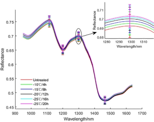 图3. 不同冷冻条件下水稻种子的平均光谱曲线及其标准差