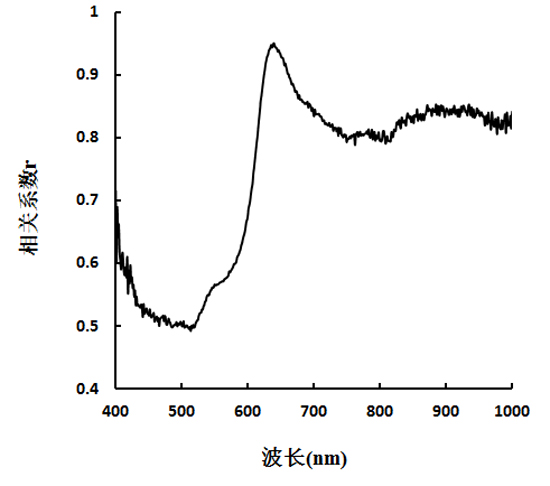 图 7 西甜瓜的糖度与各波段反射率的相关系数