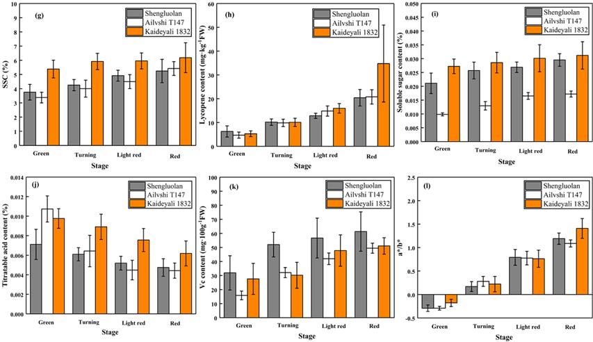 其中T是番茄红素,F是硬度,C是色度值,H是色调值。