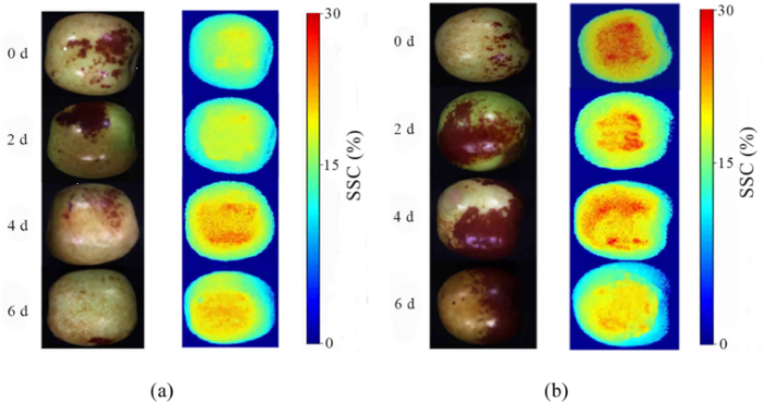 图11中熟(a)和熟(b)冬枣保质期的SSC可视化图