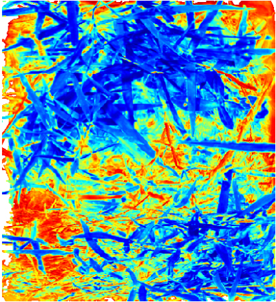 首先对原始高光谱图像进行裁剪,因在原始数据中有大量的冗余影像,这些会对数据的分析带来干扰,其次再对原始数据进行噪声背景进行扣除,减少干扰信号,同时对非研究对象进行剔除(比如说在样品中有一部分是泥土,它与植被的光谱图像是有非常明显的区别的,所以首先将其排除掉)。如下图所示,对数据进行背景扣除后的图像。