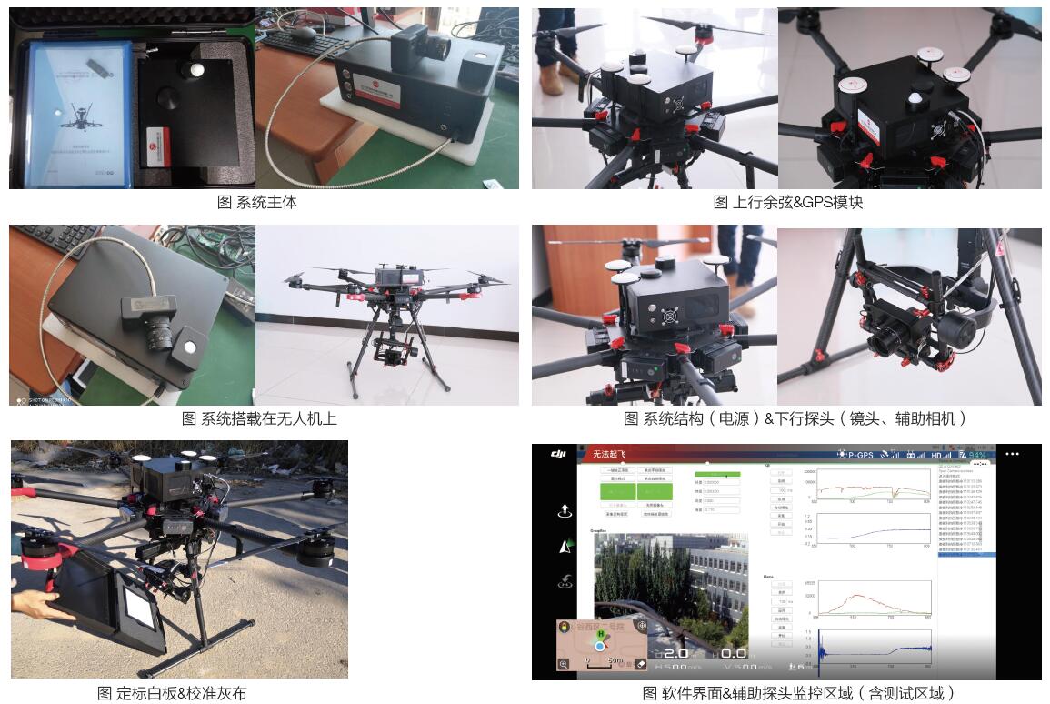 模块化集成,结构标准化,无需调试、调整系统结构,只需按照要求安装在无人机上即可,通过无线图传数据线实现系统与无人机、地面监控平台的互通。通过无人机云台给系统提供独立的供电。下行光纤与独立模块固定便于成像镜头的切换,辅助相机集成在独立模块上, 以便观察、监控采集区域。上行余弦校正功能实现模块化,实时采集太阳光照信号,其透过率高,匀化效果好,适应波段范围广。GPS 信息可以精准定位采集区域的位置信息。