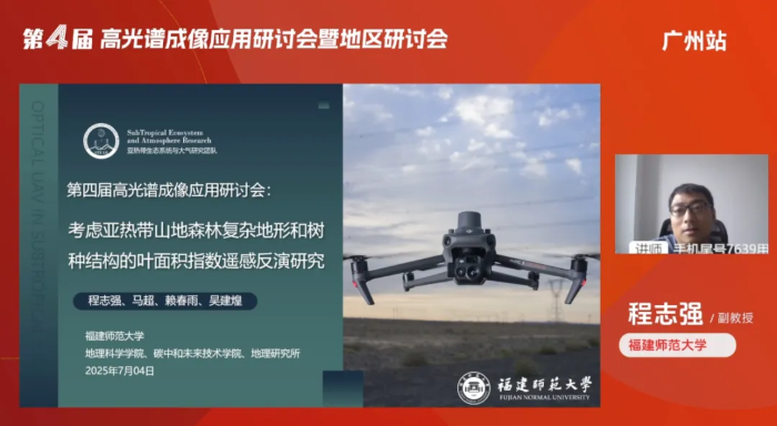 福建师范大学程志强副教授为大家带来《考虑亚热带山地森林复杂地形和树种结构的LAI反演研究》的报告。报告内容主要讲解森林冠层叶面积指数信息的准确获取是开展森林生态系统研究的前提,对增加碳汇、降低温室气体含量具有积极作用。亚热带山地是我国森林的主要生存场景,与其它场景相比,当前利用遥感手段反演亚热带山地森林叶面积指数的精度较低,而亚热带山地森林复杂的地形和树种结构是主要原因。针对这一问题,本研究借助无人机高光谱数据,发展了一套适合亚热带山地森林的叶面积指数遥感反演方法。方法首先对直射和散射辐射分别进行了校正,优化了植被指数计算精度。同时,针对树种引起的叶片叶绿素含量差异对LAI反演的影响,发展了基于非线性关系的协同反演算法,进一步提升了LAI反演精度。本研究可以补齐山地森林叶面积指数遥感反演领域的短板,为全球生态系统关键过程研究提供数据支撑。