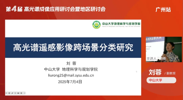 中山大学地理科学与规划学院刘蓉副教授为大家带来《高光谱遥感影像跨场景分类研究》的报告。本报告主要介绍了高光谱遥感图像凭借其独特的光谱诊断能力,可实现地物的精细分类。然而,其高维特性使得分类模型对标注数据的需求量增加,而实际应用中标注工作依赖野外调查和专家知识,成本高昂且耗时,这一矛盾使得目标场景常面临训练样本不足的困境。跨场景分类方法通过利用带标注的源域数据辅助无标注目标域的分类任务,为解决这一问题提供了可行途径。本报告针对高光谱影像跨场景分类方法面临的光谱偏移、域间语义差异等挑战提出基于深度学习的解决方案。