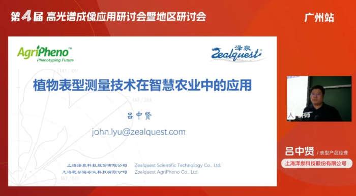 上海泽泉科技股份有限公司表型产品经理吕中贤为大家带来《植物表型测量技术在智慧农业中的应用》的报告。报告主要从不同维度介绍植物表型测量技术在智慧农业中的应用。报告从实验室尺度、温室尺度、田间尺度完整介绍了不同的表型测量技术原理以及应用。设备涵盖实验室表型测量技术、温室传送型表型测量技术、温室轨道式表型测量技术、田间轨道式表型测量技术、田间物联网分布式表型测量技术、机器人表型测量技术等,为相关科研工作者提供一套完整的植物表型测量解决方案。