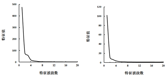 图 3 MNF 变换后的特征值曲线(从左到右:考古文博学院、山西博物院)