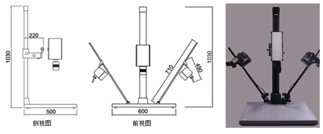 图1为GaiaTracer高光谱成像刑侦物检系统的外观尺寸图和实体图