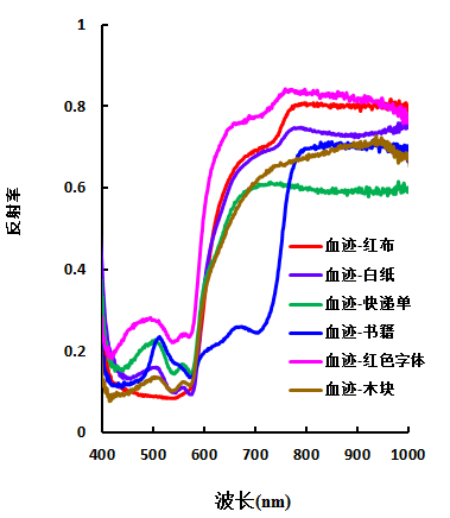 2.1 不同介质的血迹光谱曲线图