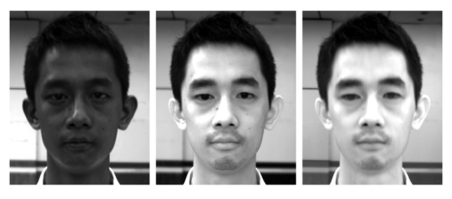 图9 人脸在400 nm、640 nm和800 nm的灰度图