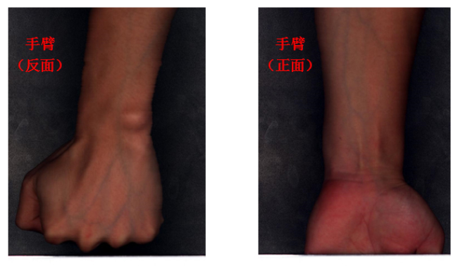 图5为成像高光谱的拍摄手臂正反面的真彩色合成图像。