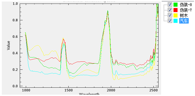 树木、汽车、伪装网均有自身的特征峰位置,可以通过具体的算法来完成这些目标物的分类和识别。