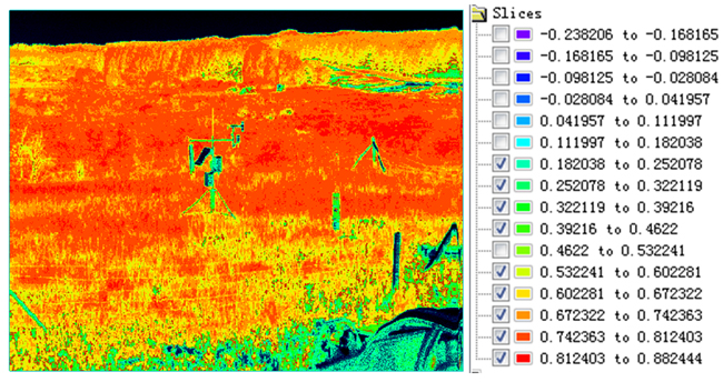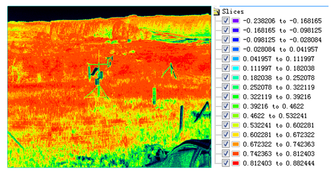 不同的目标物(或植被)的归一化植被指数是不同的,利用植被标准算法进行处理后可以得到相应的指数系数。