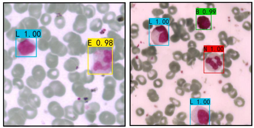 图8 基于伪彩色图像的Faster RCNN对白细胞的检测结果