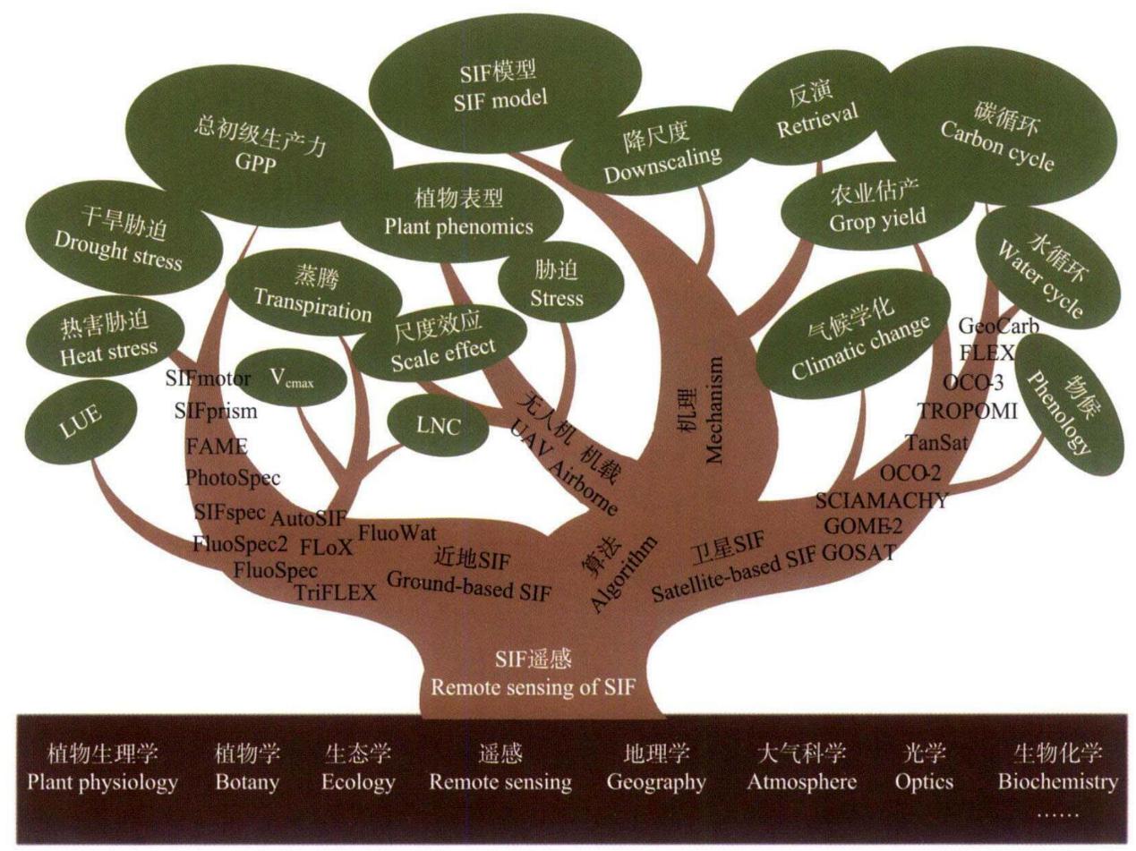 图2 日光诱导叶绿素荧光(SIF)应用现状概念图(吴霖升,2022)
