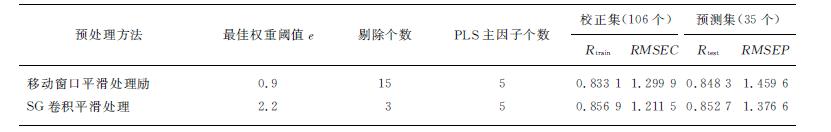 表2 最佳建模参数下建立的PLS模型效果