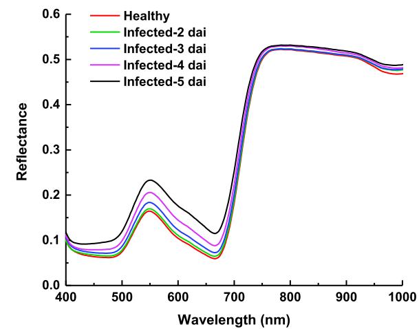 图2 小麦白粉病高光谱时序响应特征曲线