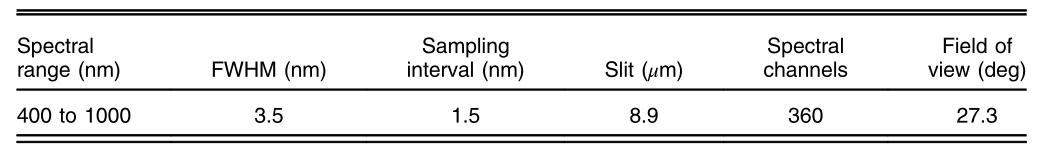表1 光谱仪详细情况