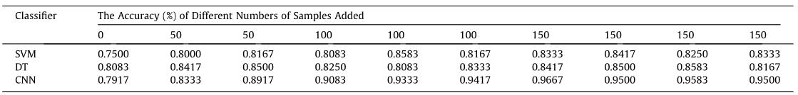 表3 不同分类器在加入不同样本数的测试集上的准确率