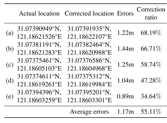 表2 校正后的坐标与实际坐标的对比结果