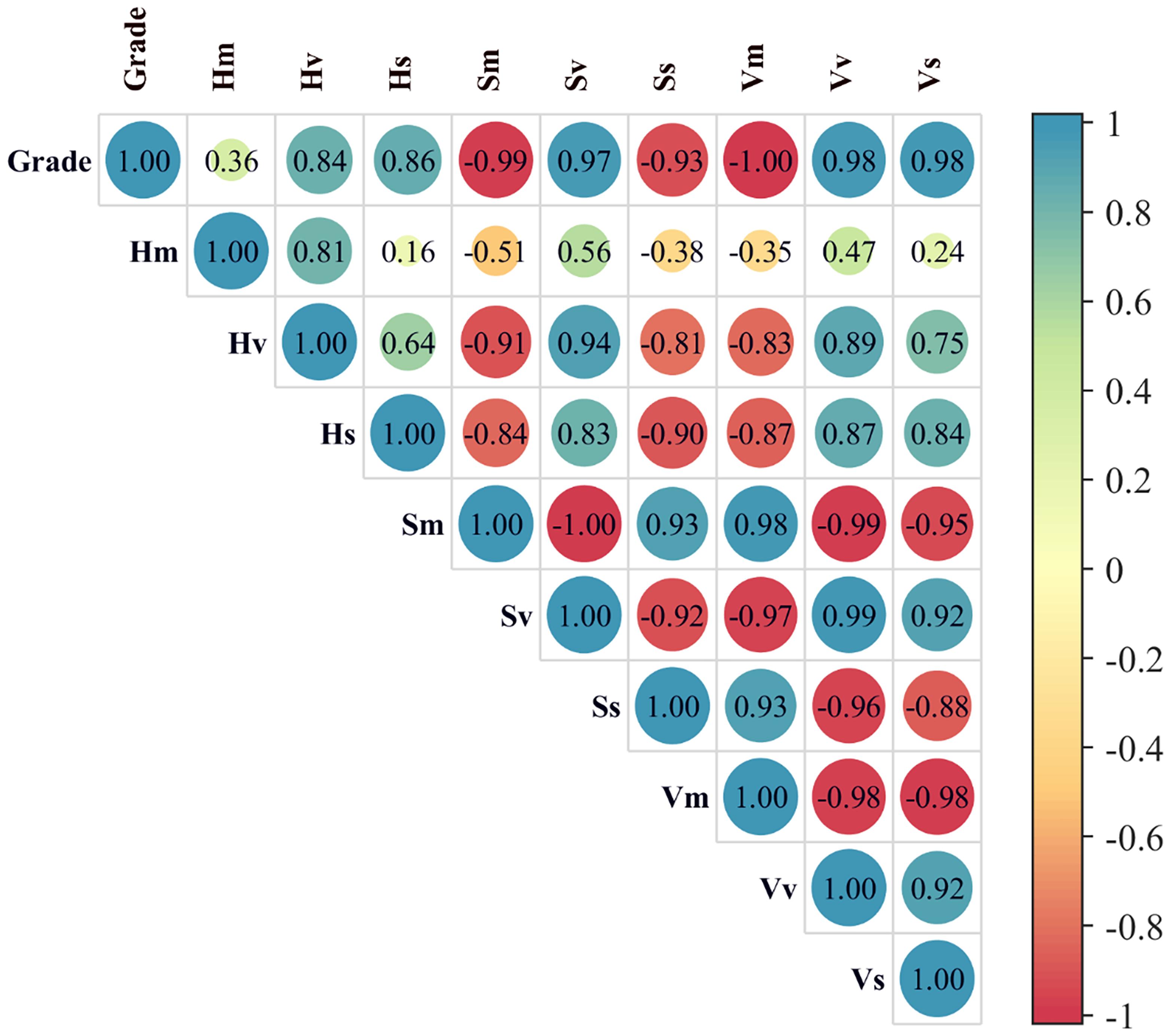 图4 品位和颜色特征参数的皮尔逊相关性分析