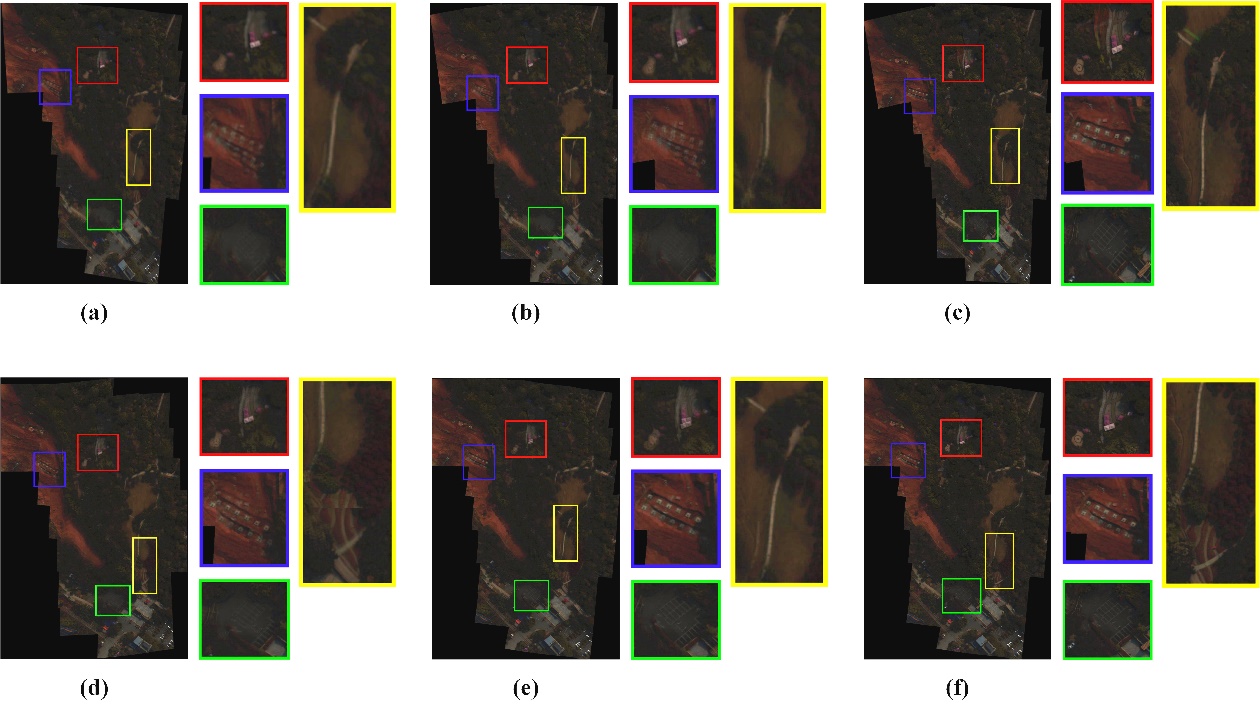 通过图3可以看出,*优拼缝线探测策略对于去除图像重叠区域内的模糊与重影误差具有显著效果,所有拼接图像均呈现出较为平滑清晰的视觉效果。然而,seam-driven与FARSE算法所得到的拼缝线均穿过了图中的*一白色建筑物。通过观察图3(f)可以看出,FARSE算法在路径规划的过程中还容易陷入局部*优解,拼缝线中部分位置出现像素大量堆积的现象。图3(d)与图3(e)为DP与EDP算法的实验结果,由于这两种方法过度注重于拼缝线中像素点的数目,导致所提取拼缝线的起止点并不固定,在图像重叠区域边界具有明显的几何错位,出现了一条明显的黑色拼接痕迹。通过图3(g)和图3(h)可以看出,本文提出方法和基于5/2范数方法所得到的*优拼缝线均可以在一定程度上*除可见边界,并且避免了明显地物,位于具有高度相似纹理信息的位置。在定量上分析中,我们使用SSIM系数对所有方法得到的*优拼缝线进行评估。可以发现,本章提出方法得到*优拼缝线的SSIM指数为0.9371,在所有方法中具有最高指标。因此,本章提出方法能够很好地选择符合人类视觉感知的拼缝线,在高光谱图像拼接任务中取得*优的拼接性能。