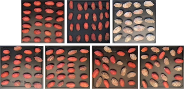 图1.用于获取七张高光谱图像的花生样本(HY)照片:顶部三张图像用于训练数据集,底部四张图像用于测试数据集