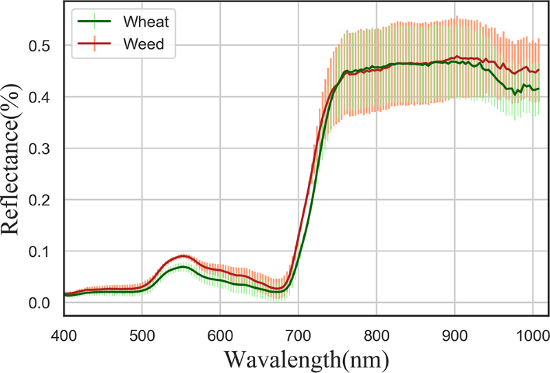 图5小麦与杂草反射率曲线