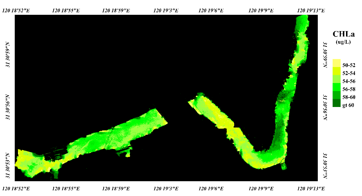 以下为培训过程中飞行的城市河道水体高光谱图像数据和水体主要水质参数分布图。
