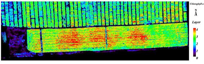 图1 无人机高光谱影像作物叶绿素a分布