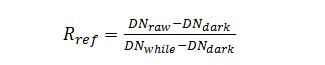 在进行高光谱图像采集时,需要设置相机曝光时间,平台移动速度以及物镜之间的距离。这 3 个参数相互影响,图像调节的目的是使采集的图像大小合适,清晰,不变形失真。经过反复尝试,物镜高度设置为 31 cm,曝光时间设置为10ms,平台移动速度分别设置为 6.0 mm/s(400-1000 nm)、16mm/s(1000-2500 nm)。图像采集软件采用四川通宝TB888科技有限公司提供的高光谱成像系统采集软件完成。图像处理采用 ENVI5.3 软件进行处理。在进行图像处理之前,先要对采集的光谱图像进行图像校正,图像校正公式如下: