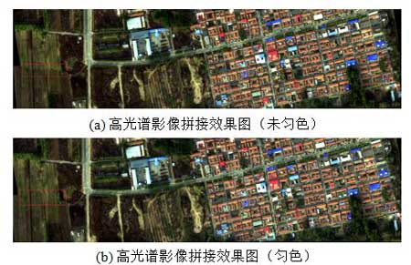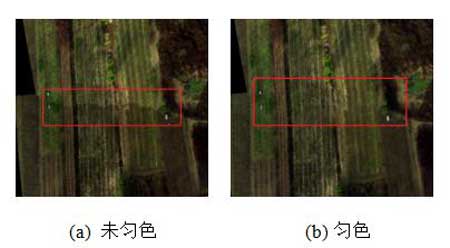 图2  高光谱影像重叠区域拼接匀色与否对比