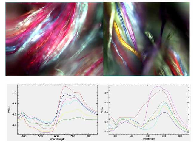 Figure A hyperspectral microscope shows the spectral and imaging of fabric (20x)