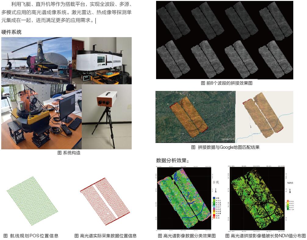 根据飞行要求设计,在机械性能、成像调节、环境适应性等方面具有优越性能,整体系统由光学系统、光谱调节系统、图像采集系统、机载控制系统、地面控制系统、图像处理分析系统组成。