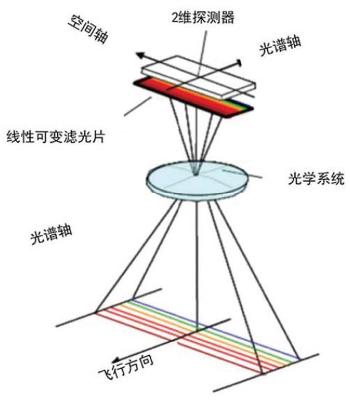 图2 基于线性渐变滤光片的成像光谱仪的工作原理图