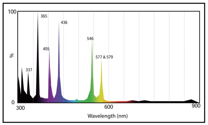 汞弧灯产生的光线即使在紫外线、可见光谱范围内连续,集中在365nm,400nm,440nm,546nm 和580nm 的离散波长。从紫外线到红外线,氙灯在整个光谱范围内具有更均匀的强度分布。荧光染料的选择对于确定荧光显微镜的适当光源至关重要。一些荧光探针具有与突出的水银线重合的激发带,而其他荧光探针受益于氙灯的更均匀分布的照射。